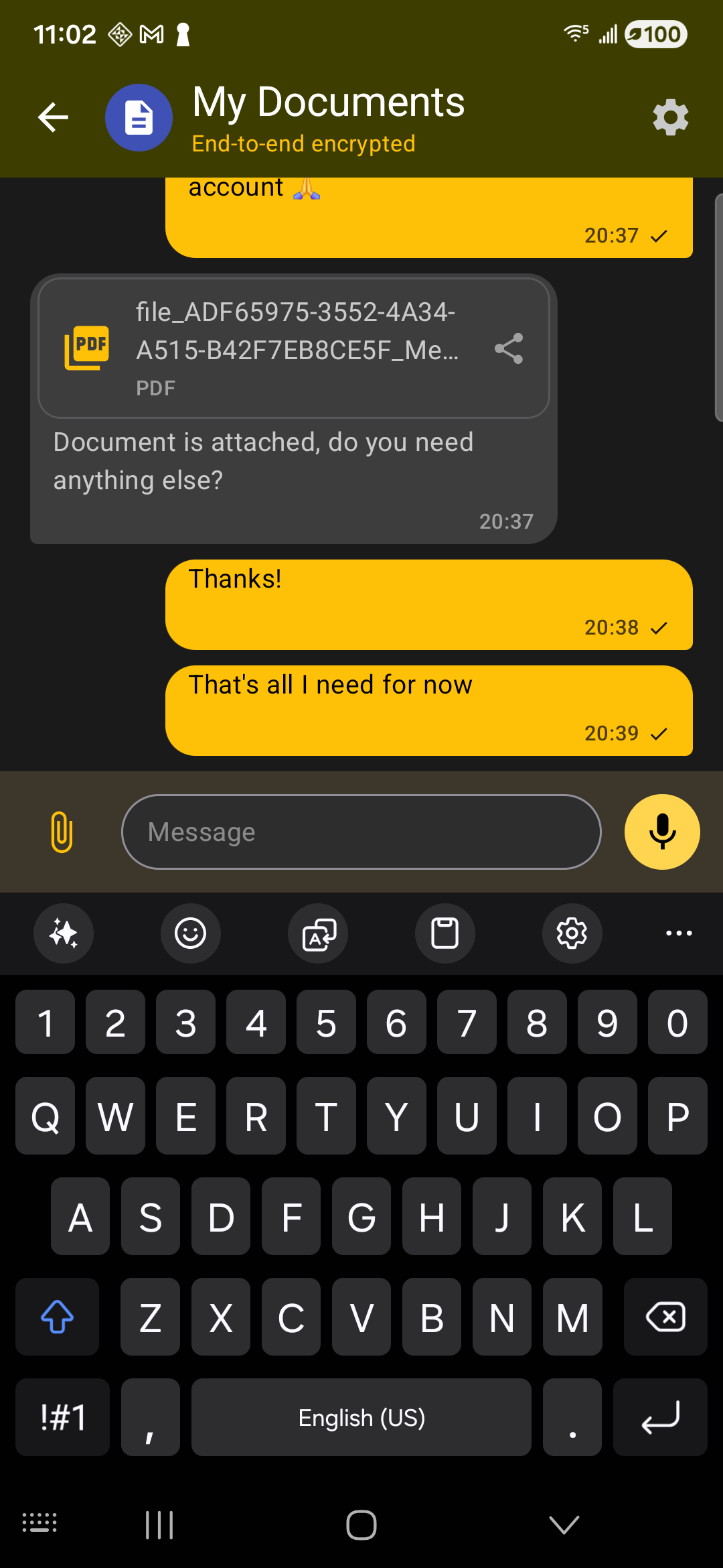 Y Communicator requires minimal permissions: camera (for QR codes), microphone (for voice messages), push notifications (for message alerts), and network access. It does not access your contacts, location, or any other personal data. If notifications are enabled, the push text is generic - "You got a message" - and never includes message content.